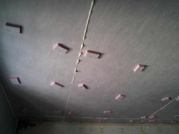 천정부위에 이보드 23t를 적용하여 단열시공 한 장면입니다. 천정의 경우는 G2본드가 완전히 양생되는 24~48시간 동안