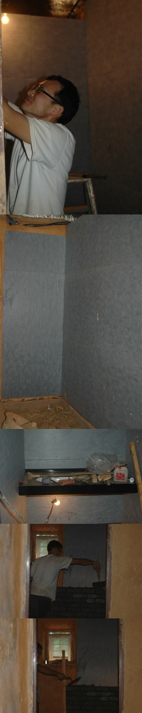 뒷면은 분홍스티로폼이 붙어있고 앞에는 타일이 잘 붙도록 부직포가 붙어있다. [출처] 욕실벽 마감(타일마감 전 이보드시공)|작성자 별 별